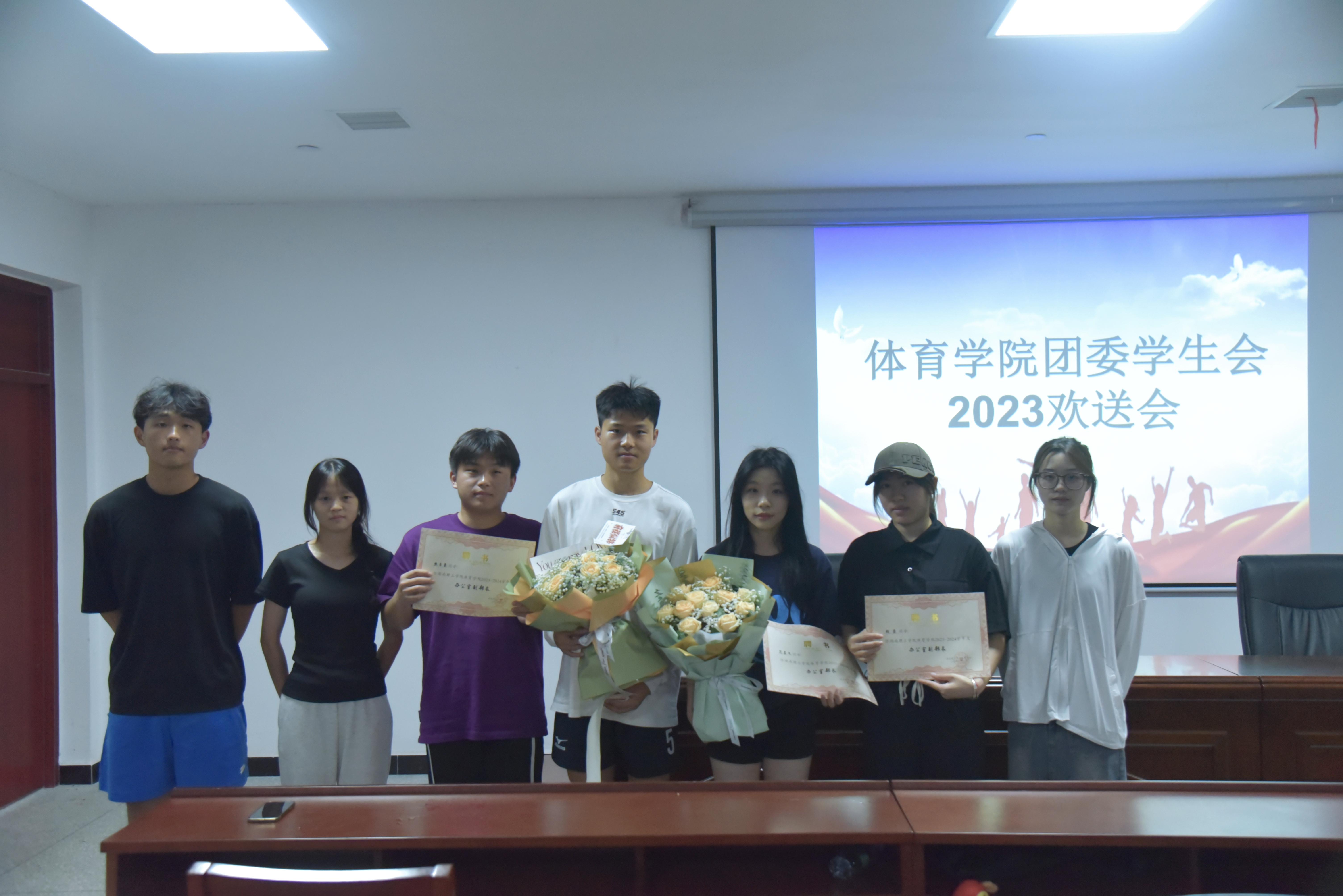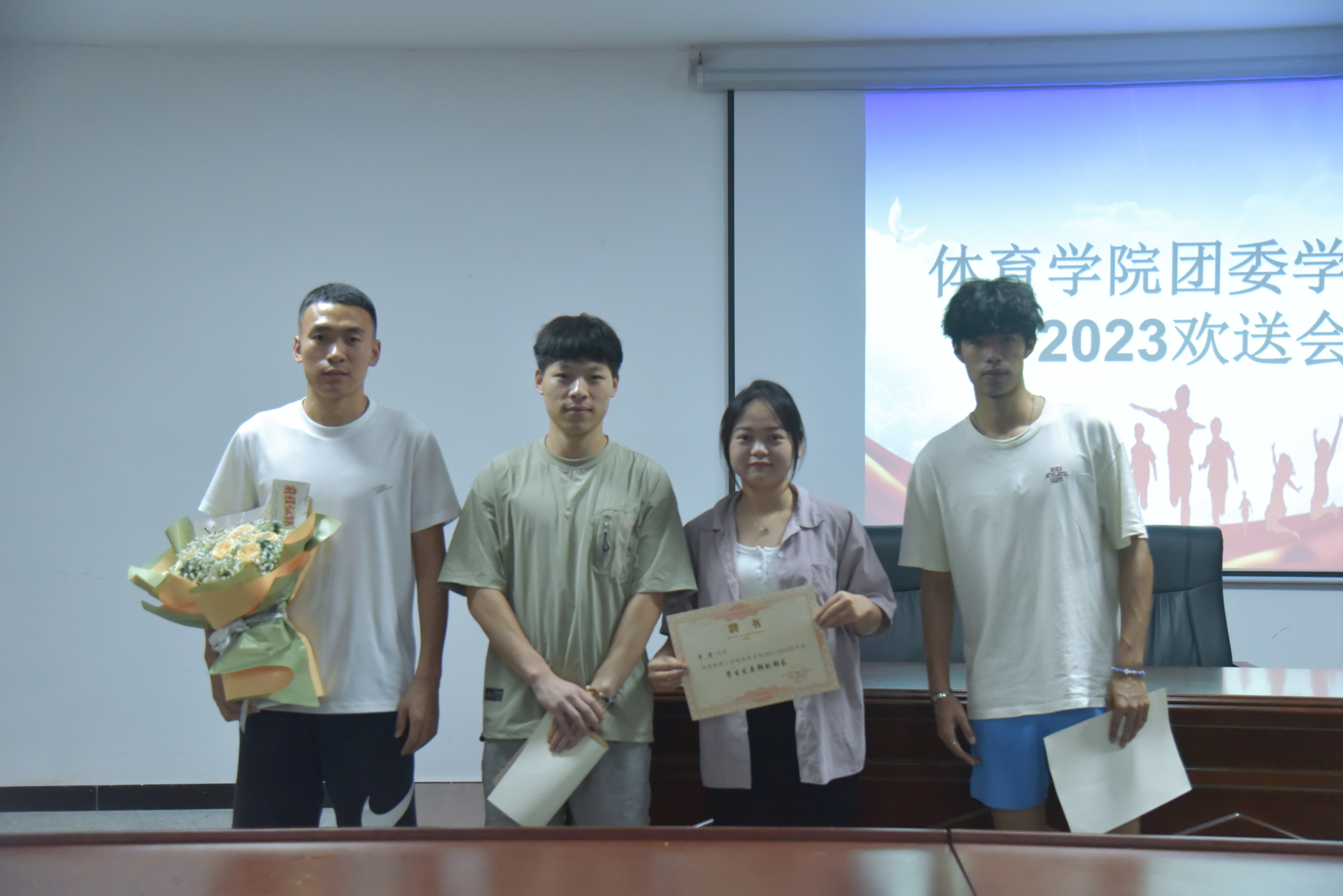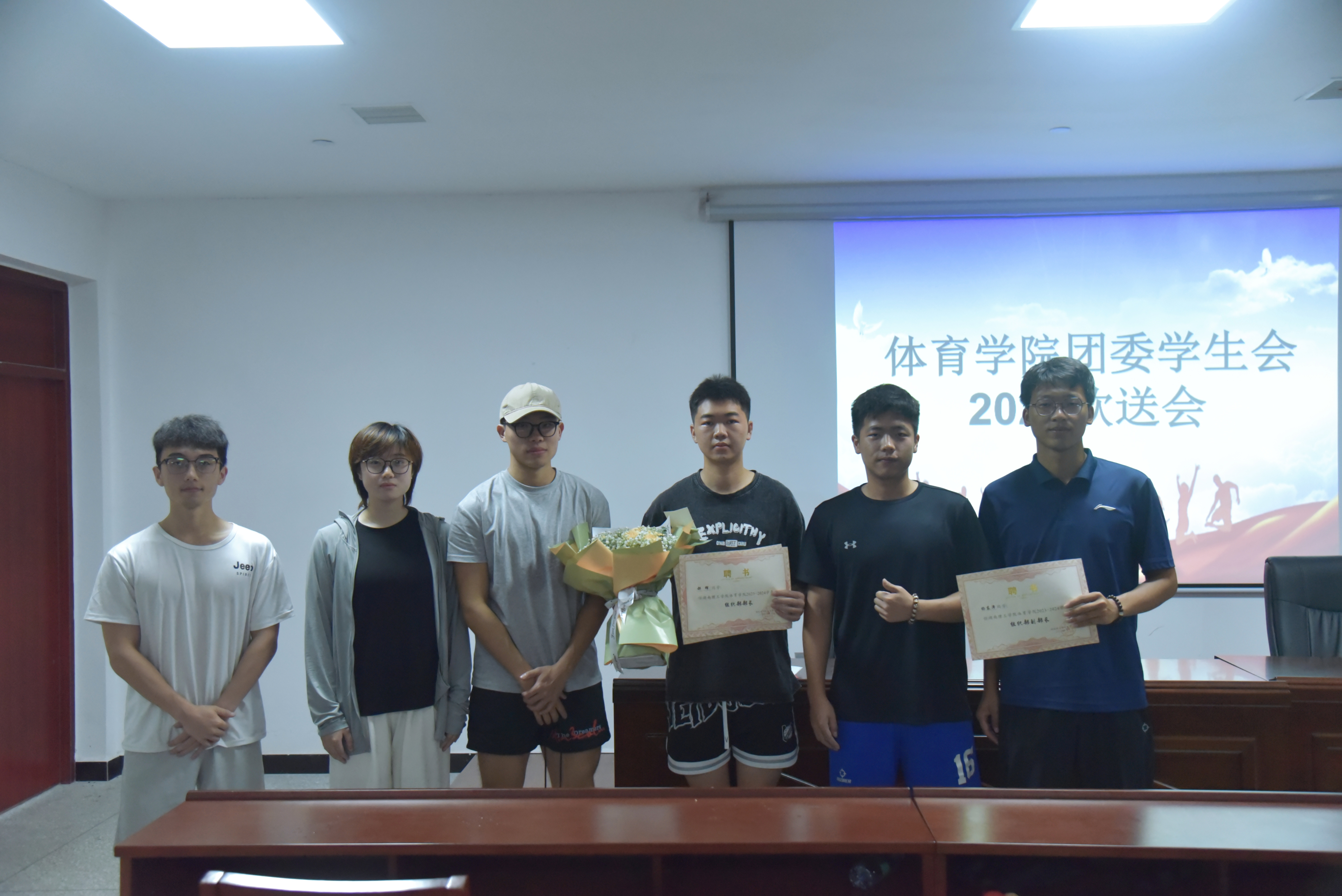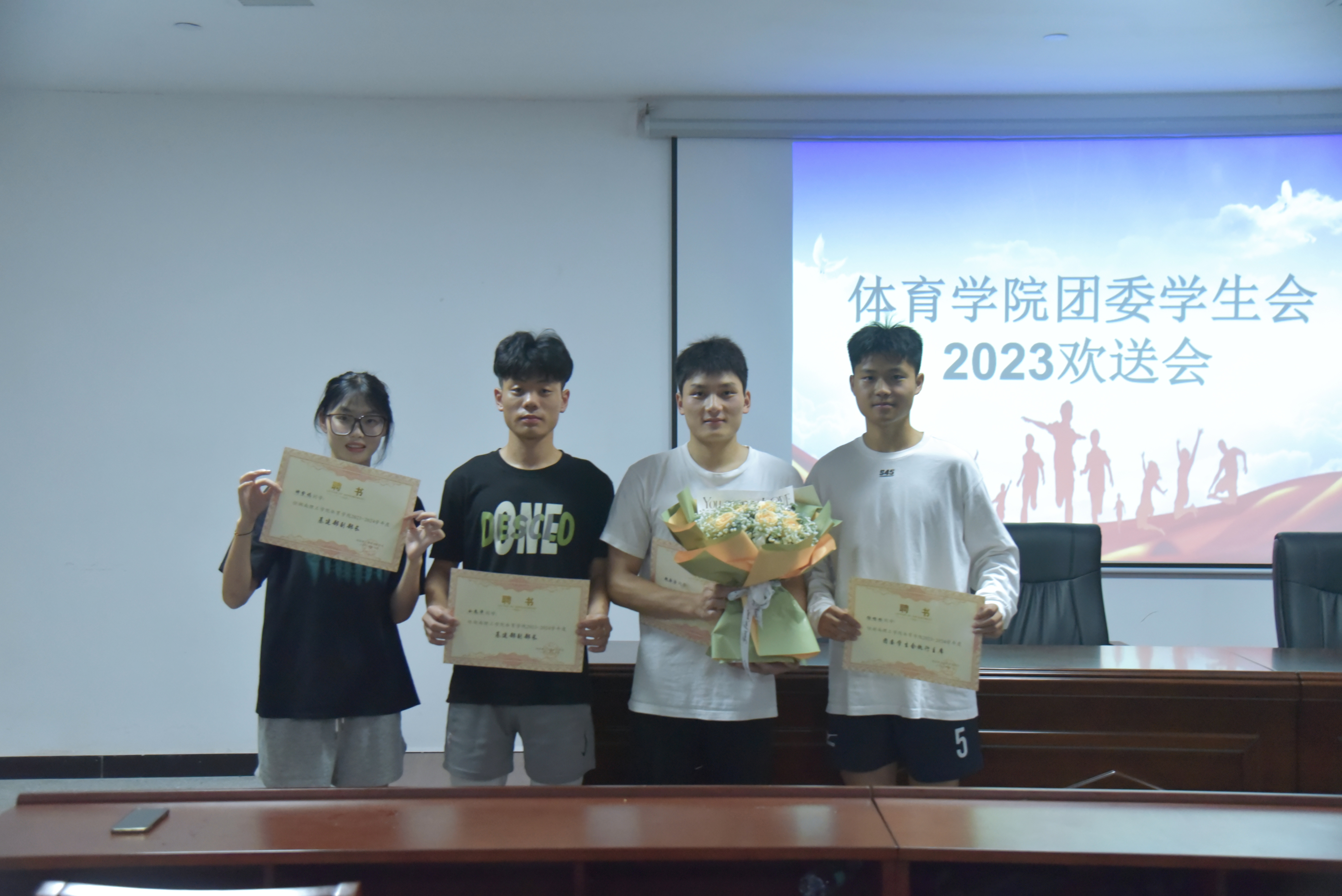 紧接着,欢送会的氛围逐渐从温馨到欢乐。首先由23级团委员工会主席谢根林发言,他表示希望员工会的干部同学们能够带领beat365手机版官网入口团委员工会越来越好。然后成员们为即将离任的学长学姐们精心准备了一段祝福视频,视频中满是大家对学长学姐们的感激与祝福之情,那些温暖欢畅的话语和珍贵的回忆让现场充满了感动与欢乐。最后,在颁发聘书的环节,每一位即将卸任的团委员工会成员都收到了一份意义深重的证书。它见证了我们在beat365手机版官网入口团委员工会的辉煌;见证了我们在活动中的欢声笑语;见证了我们的成长与进步。
