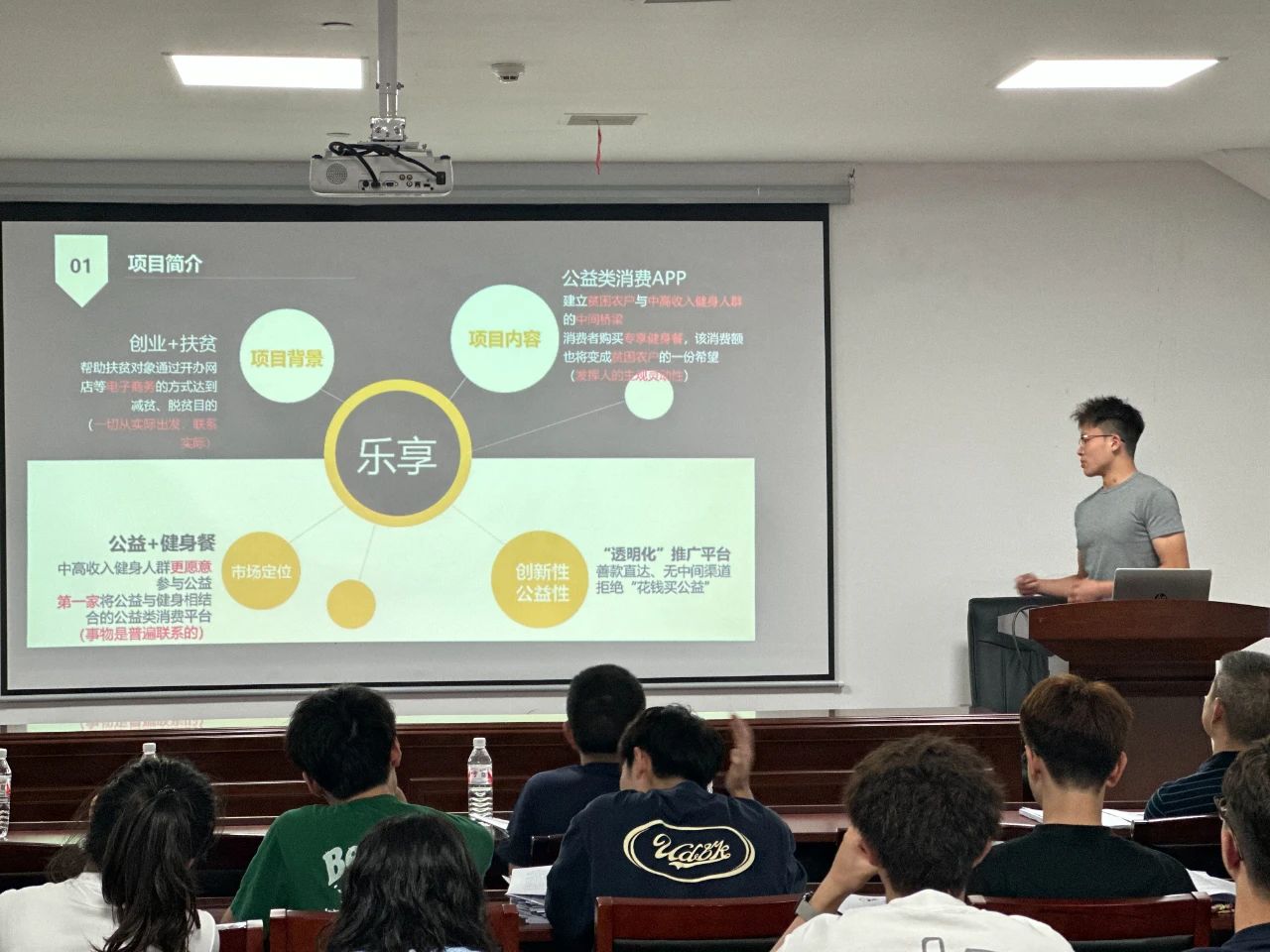 大赛由尚嘉琪同学主持,她以清晰流畅的主持风格,有条不紊地引导着比赛的进行。在她的介绍下,10支参赛队伍依次登场,展示他们的创新项目和创业构想。每支队伍都做了充分的准备,他们通过精彩的PPT展示、详细的讲解和生动的案例分析,向评委和观众们呈现了各自独特的创新理念和商业价值。这些项目涵盖了体育科技、运动健康、智能装备等多个领域,展现了beat365手机版官网入口员工的创新思维和实践能力。