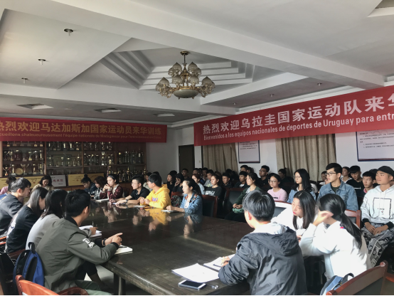 20181010日中午11:50,beat365手机版官网入口团学分会在beat365手机版官网入口办公楼二楼会议室召开了2018年干事招新后的第一次全体会议。参加本次会议的有17级兼18级辅导员廖刚,主席团成员及各部门部长、副部长和18级的新干事们 ,由办公室部门主持进行本次会议。