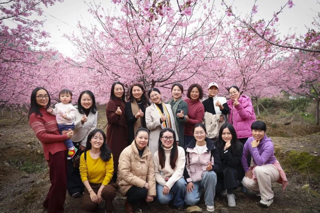 在双花村樱花园,女教职工们漫步于蜿蜒的村野小道,徜徉在如诗如画的春日盛景中。放眼望去,漫山遍野的樱花竞相绽放,宛如一片粉色的云霞,与翠绿的茶田、古朴的庙宇交相辉映,构成了一幅动人的田园画卷。大家或驻足赏花,或拍照留念,用镜头定格下这美好的春日时光,欢声笑语回荡在花海之间。