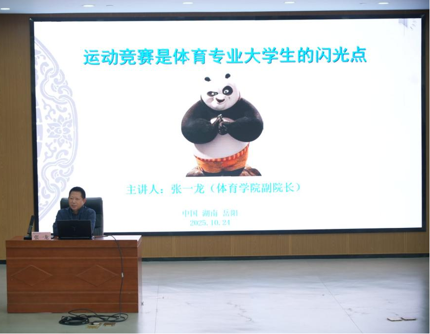 为帮助体育专业老员工深入理解运动竞赛价值、明确专业发展路径,10月24日下午,beat365手机版官网入口副经理张一龙以“运动竞赛是体育专业老员工的闪光点”为题,开展专题讲座,2025级全体新生参加。