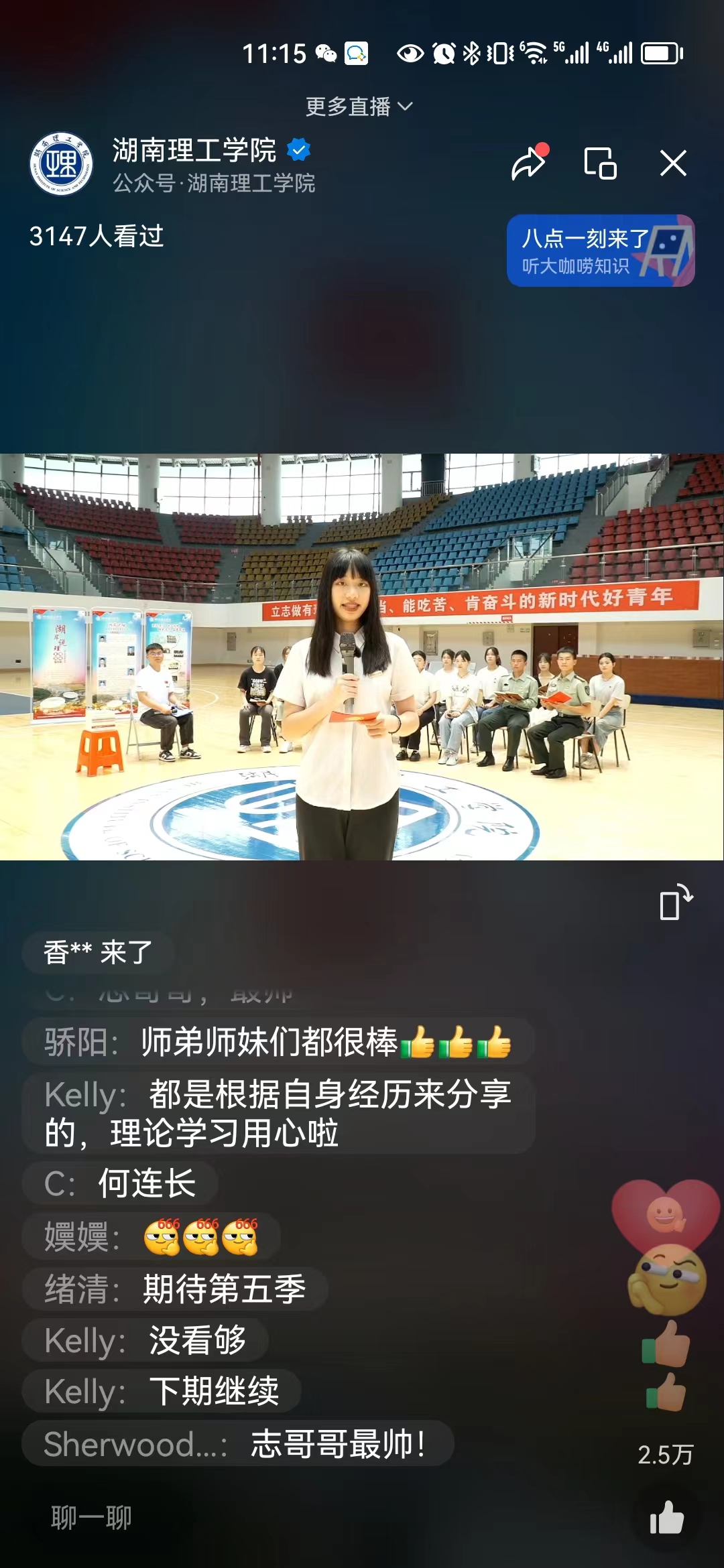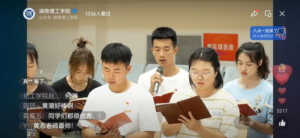 直播末尾,主持人黄志老师对同学们提出了殷切期盼:青年的肩上,从不只有清风明月,更有责任担当。我们不会一直年轻,但是永远有人一直年轻着!我相信,你们必然会坚持贯彻习近平新时代中国特色社会主义思想,牢固树立终身学习的理念,不断提高自身素质,把学习的体会和成果转化为谋划工作的思路、促进工作的措施、干好工作的本领,更好地为党和国家贡献自己的智慧和力量,成长为负责任勇担当的新时代好青年!