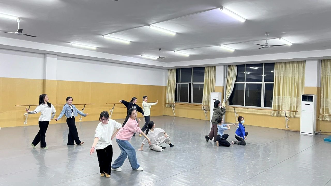 夜幕降临,他们依旧热情四溢,相约在训练场地进行排练。清耳悦心的乐曲响起,自然流畅的动作展现在彼此眼中。一轮弯月爬上树梢,团结的力量让他们深有信心,奋斗让他们恣意快活。