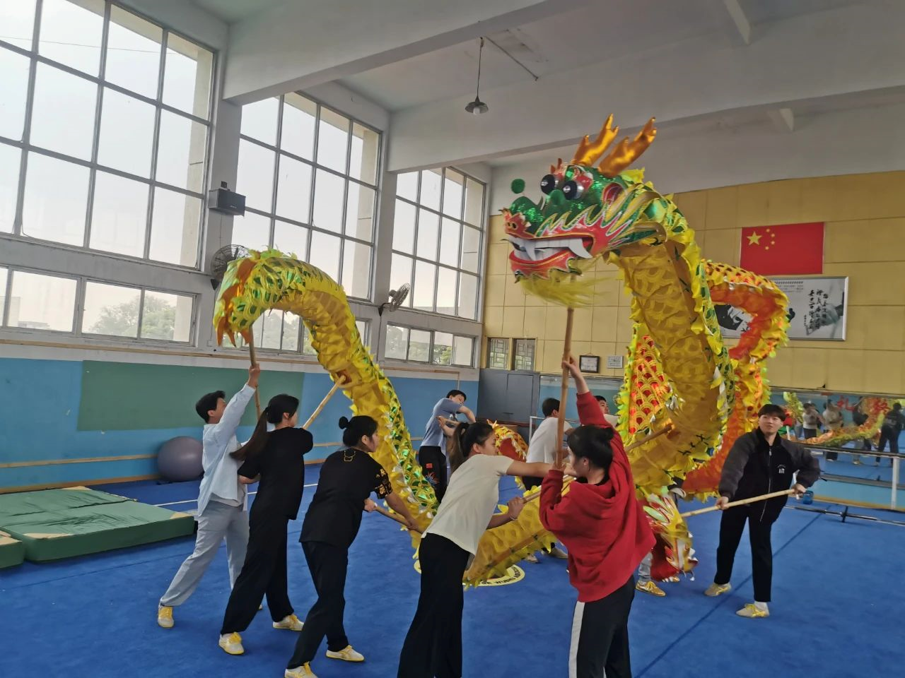 傍晚,湖理校园里的路灯相继亮起。训练场馆内,舞龙的数名参赛选手正分别举着龙头、龙身及龙尾,他们各司其职,每人如星点般的力量一同汇聚在两条龙体上。这两条龙便是beat365手机版官网入口员工欧阳柯彤所在队伍注重的核心。