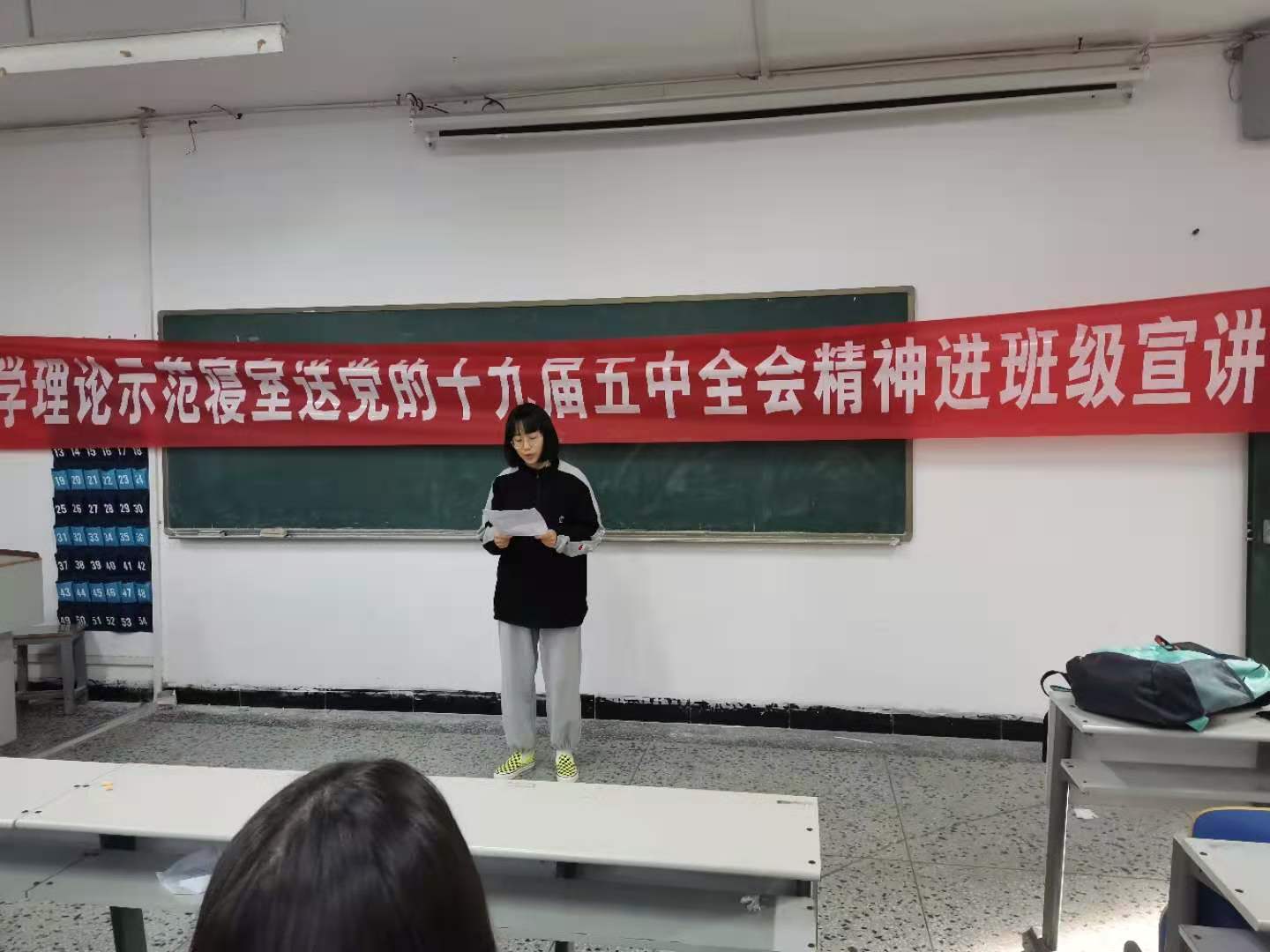 党的十九届五中全会胜利闭幕后,beat365手机版官网入口迅速掀起学习贯彻全会精神热潮,认真领会全会精神实质。604学理论示范寝室送党的十九届五中全会进班级宣讲活动于11月30日上午9:40在2110教室举行。