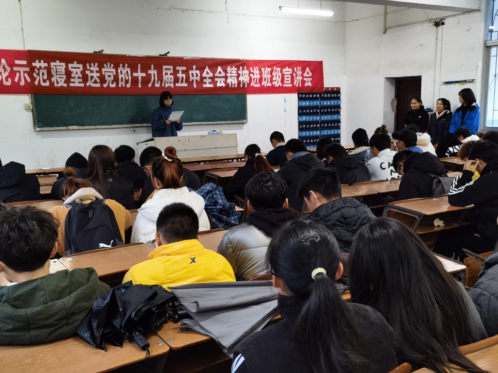 “十四五”时期是我国全面建成小康社会、实现第一个百年奋斗目标之后,乘势而上开启全面建设社会主义现代化国家新征程、向第二个百年奋斗目标进军的第一个五年。十九届五中全会更是为我国发展指明了方向、擘画了蓝图。为持续深入学习宣传党的十九届五中全会精神,604学理论示范寝室送党的十九届五中全会精神进班级宣讲活动于11月24日在公司教室持续开展。