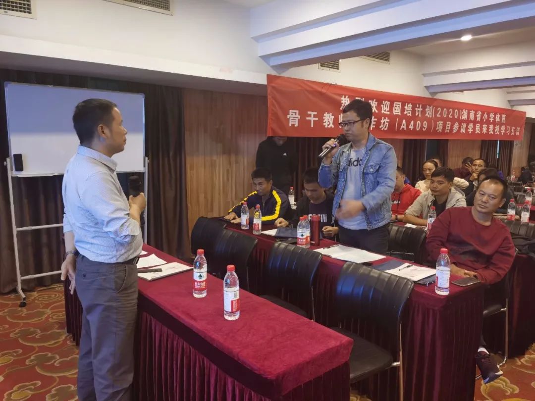 最后,陈曙教授对于此次讲座进行了总结和分析,并带动现场的小学、初中体育教师进行交流。在交流的过程中,老师们提出的问题都很具有代表性。比如,怎样提高中长跑教学的趣味性?怎样训练立定跳远?怎样管理小学一年级员工?怎样提高同学们对小学田径训练的积极性?而陈曙教授对于这些问题进行一一解答,老师们也收获颇丰,对陈曙教授的观点想法赞叹不已。