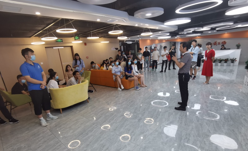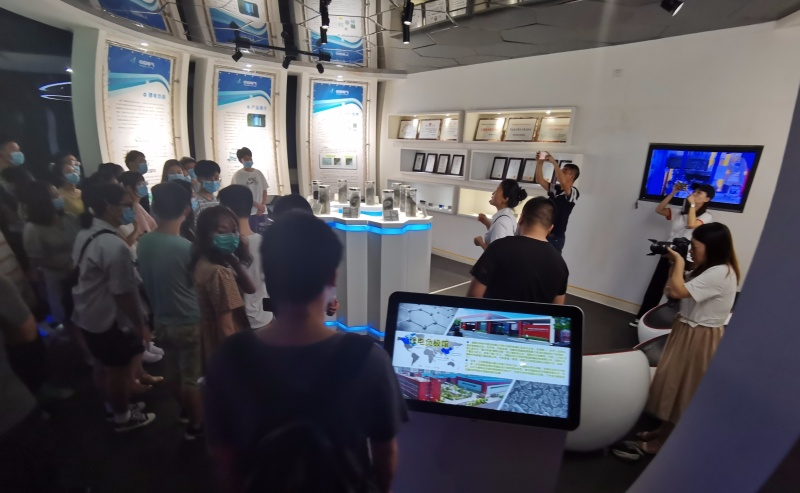 图为参观中科电气企业机器工作原理以及模型