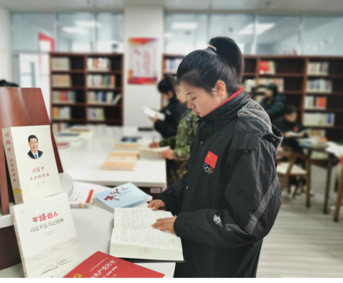 邓娟和吴平,则依靠着书柜,认真的看着《李大钊全集》,她们认为,要学习理论知识,就要从学习先进和榜样的优秀事迹开始,要传承他们身上的红色基因。邓娟说:那些被誉为“最美教师”、“最美司机”、“最美卫士”的普通人,他们就是自己要学习的榜样,他们用自己的爱心和善行,用自己的坚守和执着,在危急时刻做出了英雄壮举,在生死关头展现人间大爱,感动全社会,感动全中国,同样也感动了自己。他们的“美”,美在爱心、美在善良、美在奉献;他们的“美”,体现了当代社会的道德高度,他们的先进事迹和高尚品德,来源于中华民族深厚的道德积淀,是每一个中国人民社会主义核心价值观的生动诠释,这就是我要学习先进和榜样的目的。