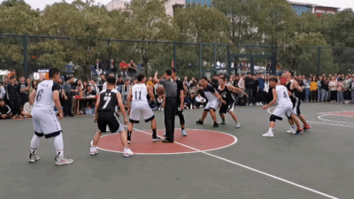 整齐一致的球服,气势如虹的鼓励声,蓄势待发的眼神,这是每一位篮球运动员、每一个篮球队伍对篮球赛的尊重和热爱!球员走进球场的那一刻起,一场龙争虎斗就要开始了。此时的观众席早已按耐不住内心的激情,口哨声,欢呼声充斥着整个篮球场。随着裁判的一声哨响,球已被扔向空中,双方球员奋力击球,球迅速落在一名运动员的手上,防守队员随即跑向持球队员,持球队员立刻奔跑冲向对方球员的篮框处,双方球员个个生龙活虎,做掩护,传球,球立刻传到球框下一名球员手中,旋转护球,在对方队员不备之时起跳,“砰”一个漂亮的扣篮,观众席立刻尖叫连连,场下后备队员欢呼雀跃。