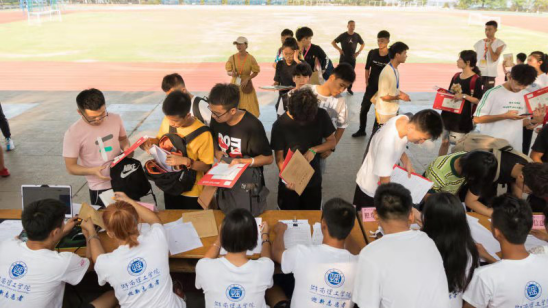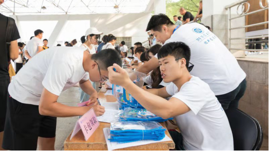 报道的前一天,志愿者们在校园的各个角落竖起蓝色的帐篷,搭建帮助新生顺利入学的志愿服务点,只希望报道当天的你一切顺利。相逢让暖暖的心意传递,相逢让彼此的笑容焕发。