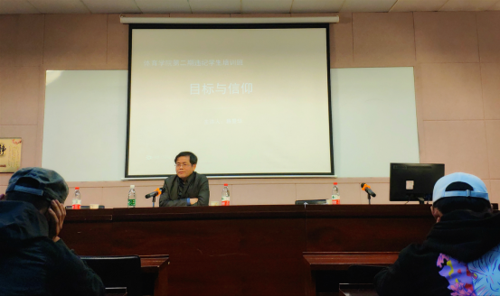 人事处副处长蔡景华为同学们讲解了“目标和信仰”并且从到底从哪儿来、要往哪儿里去、到底要干什么三个方面来阐述何为目标、何为信仰。蔡副处长向同学们强调了校纪校规,法律法规,同学们要严格要求自己约束自己。要制定一个大目标来引导一个小目标去实现自己的最终目标。他希望,既要看到自己,也要看到他人,更要看到家人。走入社会,一定要以自己的品格、德行为先,不要做一个行动上的巨人,思想上的矮子,要做一个对社会有用、有影响的人。