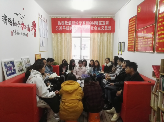 2018年12月19日上午8:00,604学理论示范寝室分别接待了化工公司和外语公司的理论学习代表。同为学理论的一员,同学们齐聚一室。围绕“改革开放四十年的变化”这一主题,畅所欲言。