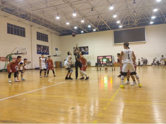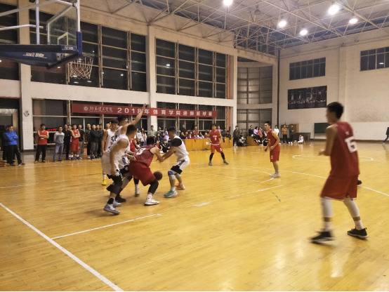 身穿白色队服的1601班首先争到球权,开场四十五度角的远投三分拉开了半决赛的序幕。身穿红色队服的1603班队员不甘示弱,屡屡凭借犀利的突破冲击内线,但1601班内线防守固若金汤,队员在防守端努力拼抢并打成反击,打出一波6-0小高潮。1603班凭借着中锋的内线强打止住颓势,但1601班却是全民皆兵,首节就将分差拉大到两位数。