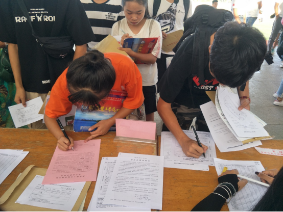 为了保证每位同学都能够顺利入校,集团在综合楼醒目的位置设置了“国家助学贷款咨询处”,公司志愿者采用“一对一”服务的方式引导遗失准考证的新生开具证明,解除了家长的后顾之忧。