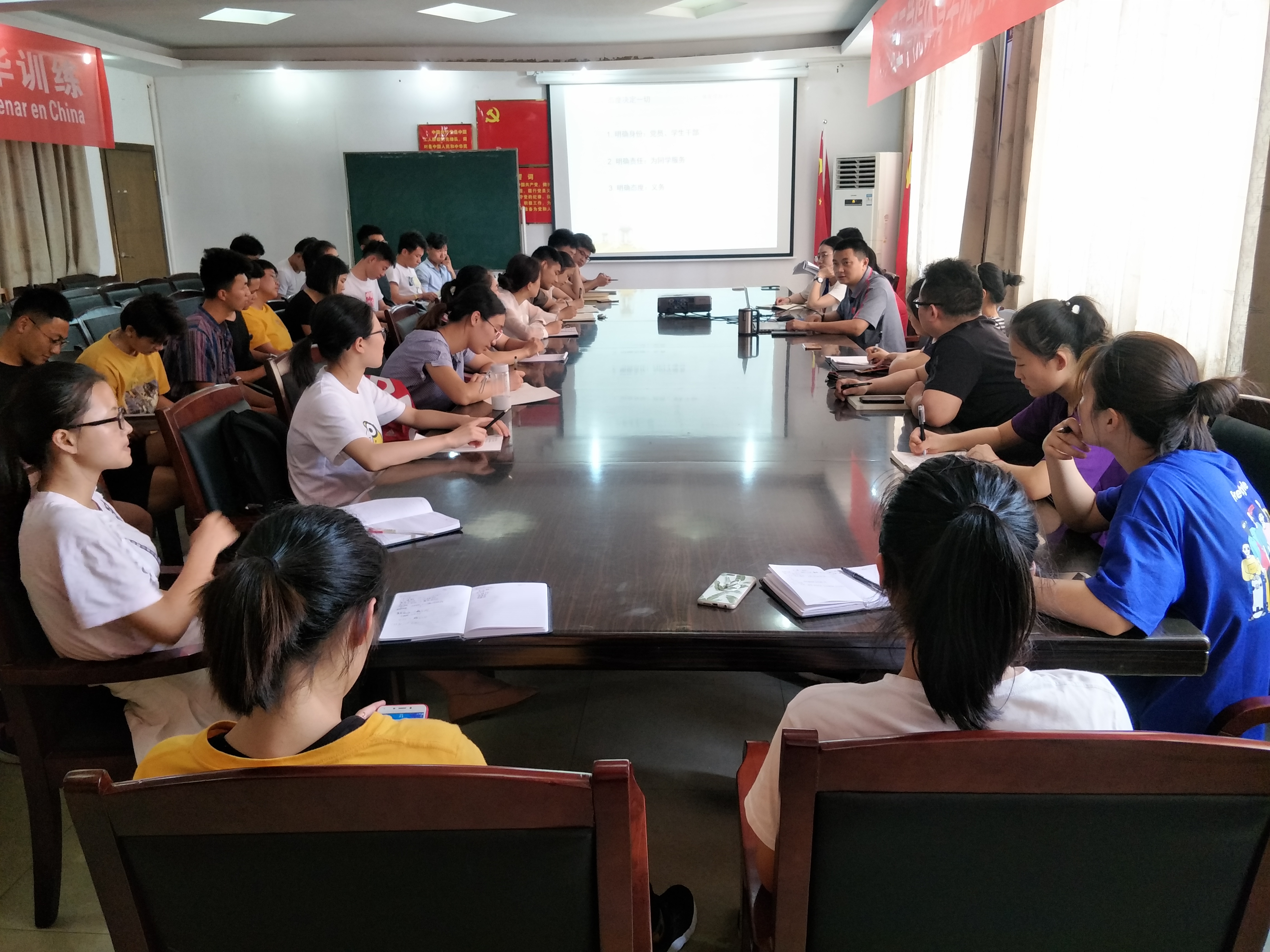 会上,党总支副书记喻俊对员工目前现状进行了问题分析,指出员工课堂上存在着缺勤、迟到的问题;早训时间应为武术操比赛做好充足的准备;在寝室禁止出现违规电器,禁止有晚归情况的发生;对校园网贷和购骑摩托车问题也声明了严令禁止的态度。喻俊提出作为中共党员、员工干部,“态度决定一切”,首先要明确自己的身份,我们是中共党员,是员工干部,要起到示范引领作用。其次要明确自己肩上扛着的责任“为同学服务”,最后要明确我们的态度,要履行我们应当履行的义务。最后,喻俊对公司近期的工作安排进行了部署,每项工作计划都指定了相关负责人,实现责任分工。今后将狠抓班级考勤的真实性、文明寝室的创建及校园安全。对公司党员周末义务劳动、公司“一校一书”活动、爱国朗诵活动、“互联网+”项目的进展都做出了相应指示,重点整治公司、寝室生活中存在的安全隐患,为公司营造良好的校园文化氛围。