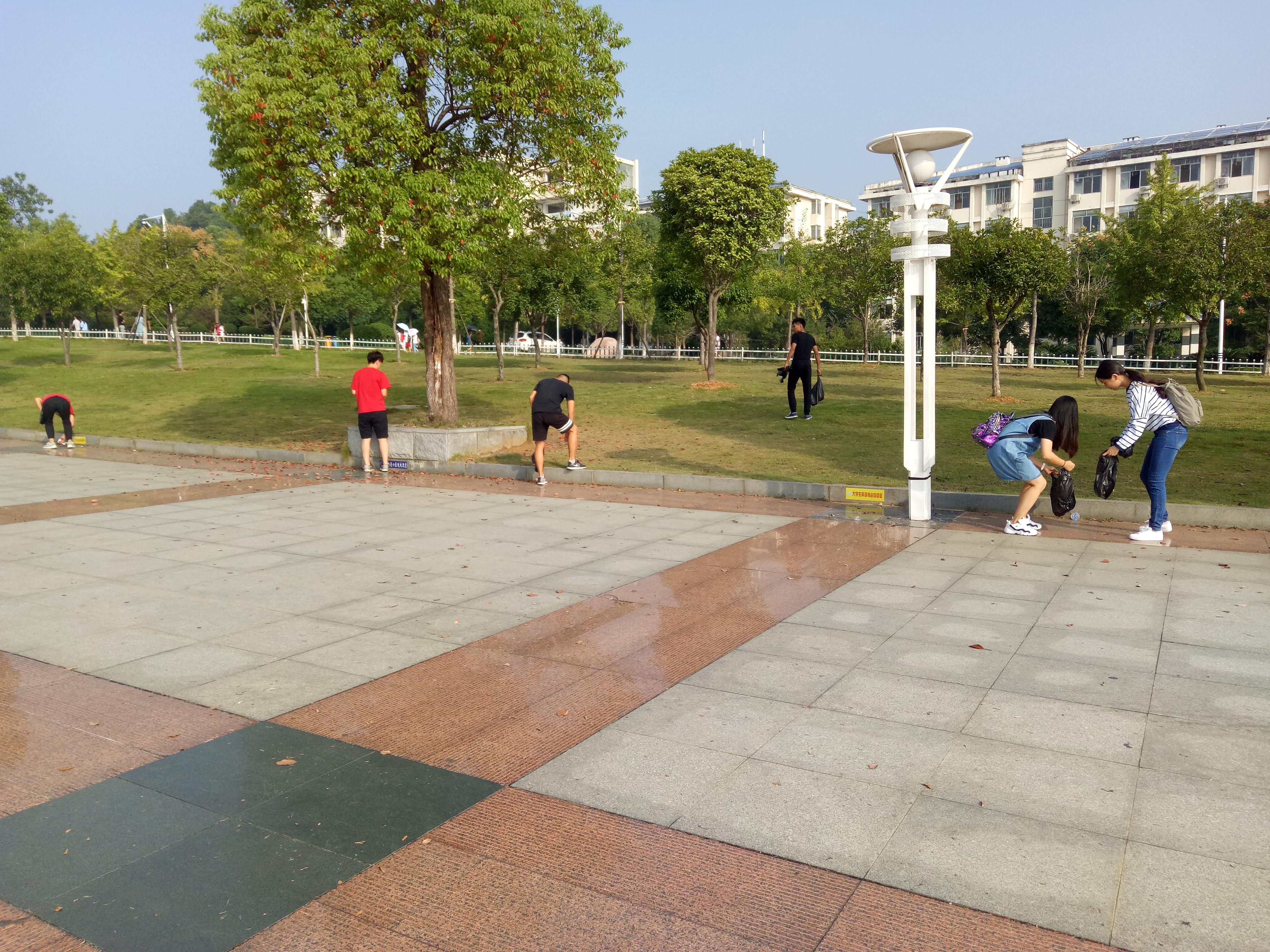 经过简单分工后,各组员工在包干区域内热火朝天地开始劳动。本次义务劳动的主要任务就是清理从七栋教学楼到田径场这一路上的“白色垃圾”。虽然已经步入秋天,但是炎炎烈日仍旧炙烤着大地,太阳丝毫不因大家的汗水而有所收敛。但是,这一切丝毫没有影响大家的热情,依旧忙得不亦乐乎。经过几个小时的清理,最终将整个场区打扮的清爽洁净,焕然一新,为我们的公司创造了一个整洁、清爽的环境。