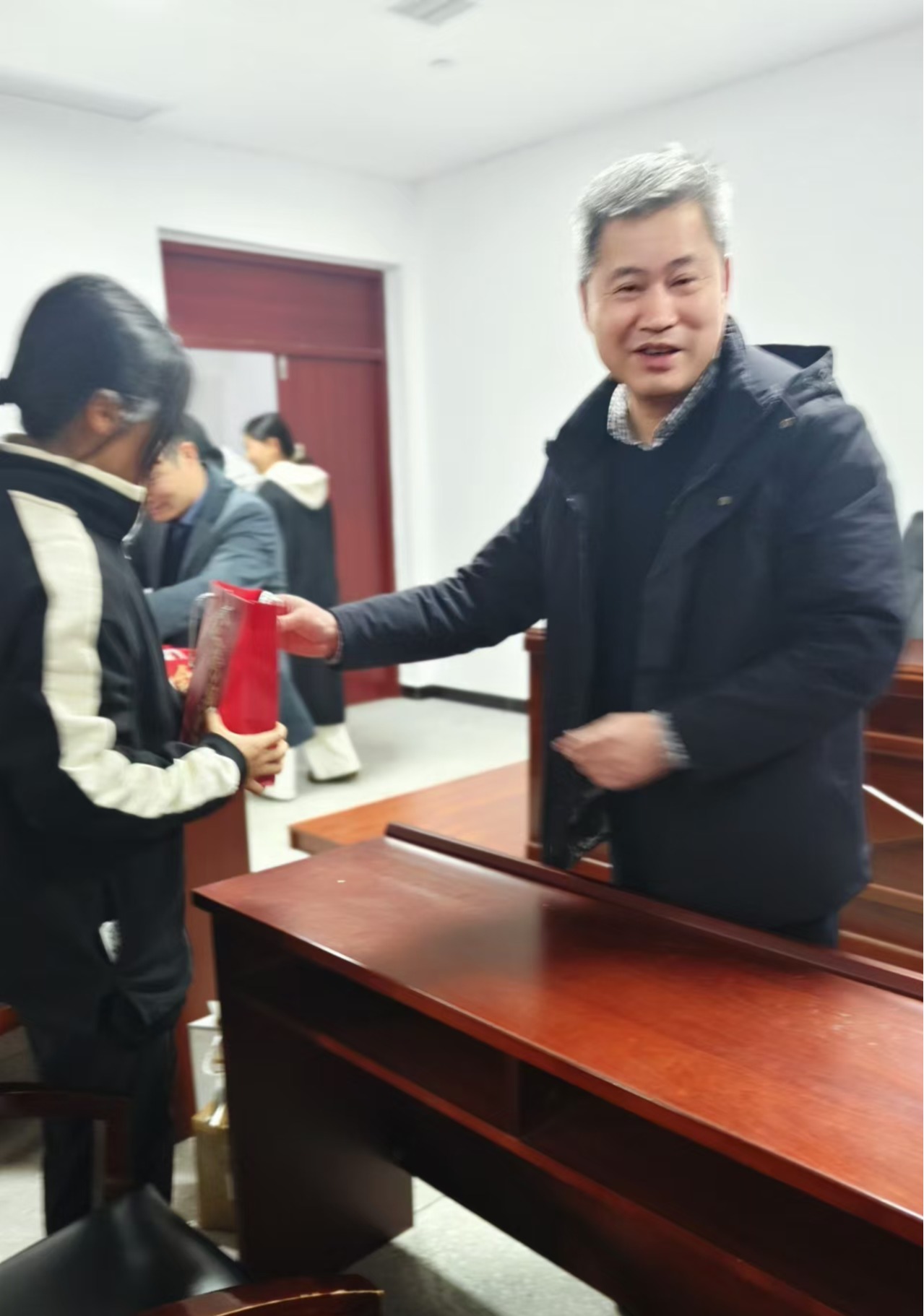 讲话结束后,公司领导为考研学子逐一发放印有“金榜题名”的慰问小礼包,红色的礼品袋传递着公司的关怀与美好期许。学子们纷纷表示,感受到了公司的温暖,将把这份鼓励转化为备考动力,全力以赴冲刺考研。