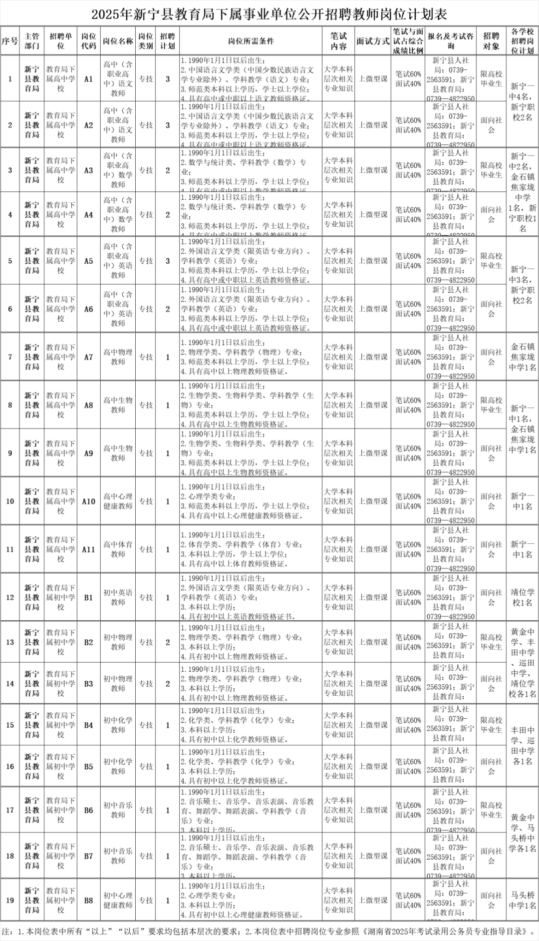 附件1《2025年新宁县教育局下属事业单位公开招聘教师岗位计划表》中的年龄、学历、学位、专业资格证及其他资格条件。