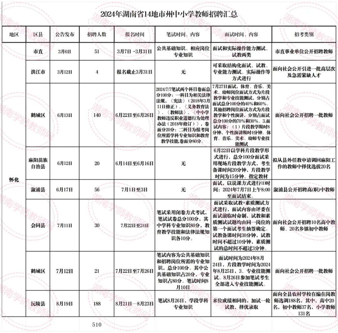 从2024年怀化市各区县教师招聘情况看: