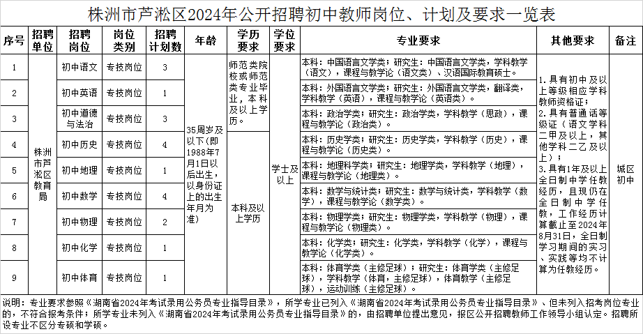 (1)《株洲市芦淞区2024年公开招聘初中教师报名登记表》纸质表(须贴好本人近期1寸免冠彩色照片);