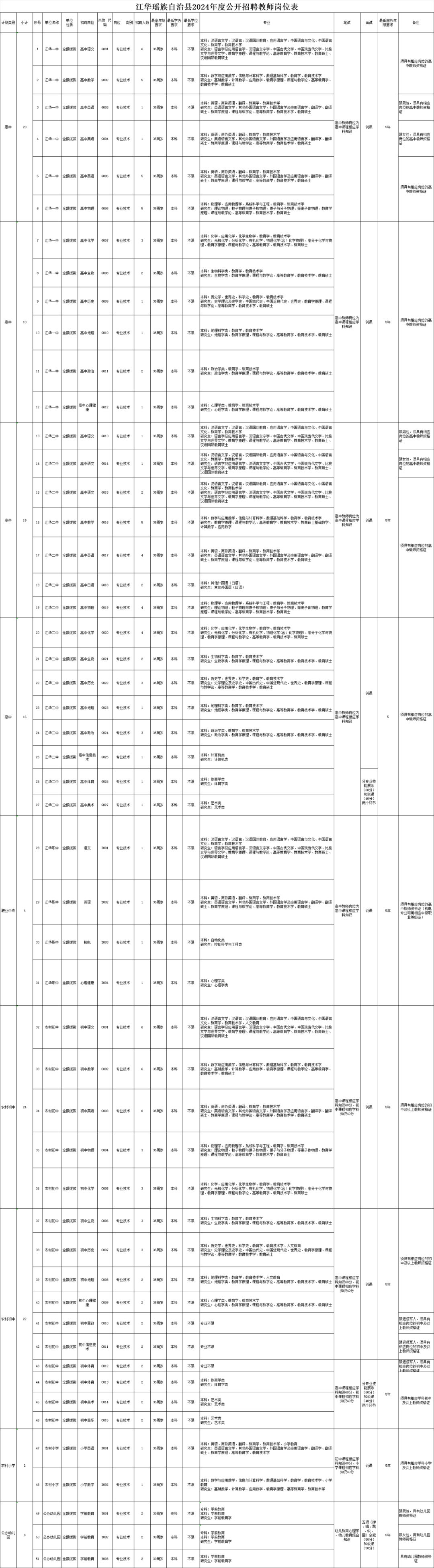 (3)学历条件:详见附件1:《江华瑶族自治县2024年度公开招聘教师岗位表》。