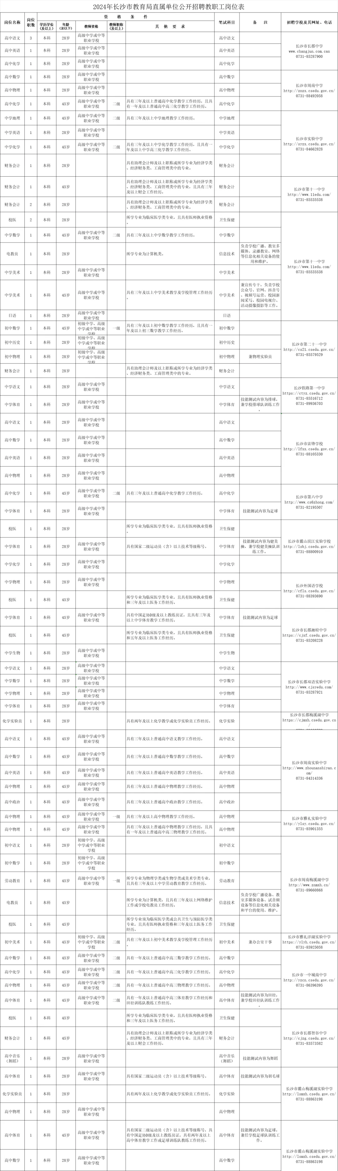 2024年长沙市教育局直属单位公开招聘教职工116人简章