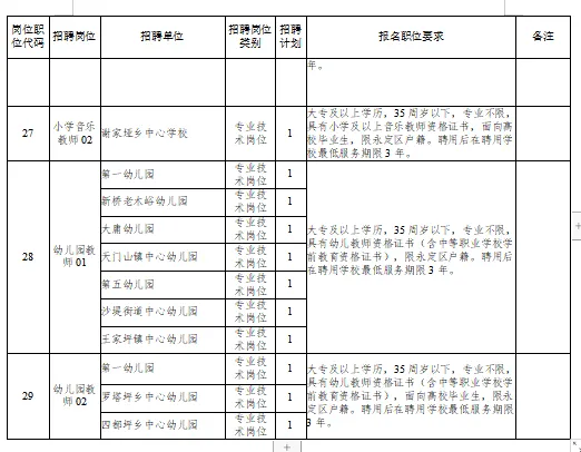 永定区教育系统2024年26个事业单位38个岗位计划面向社会公开招聘中职、初中、小学教师及幼儿园教师38名,其中,13个事业单位18个岗位计划用于专项招聘高校毕业生(高校毕业生指2022、2023、2024届未落实工作单位的高校毕业生,以下简称"高校毕业生")。各单位招聘岗位、招聘计划、报考岗位要求等详见《永定区2024年公开招聘教师计划与职位表》(附件1),本次招聘所设专业不区分专硕和学硕,报考岗位要求中"以上""以下"均包括本层次要求。