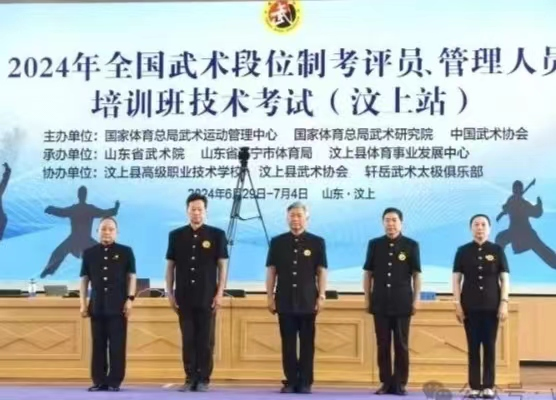 6月29日至7月3日。由国家体育总局武术运动管理中心、国家体育总局武术研究院、中国武术协会主办,由山东省武术院、济宁市体育局、汶上县体育事业发展中心承办,由汶上县高级职业技术公司、汶上县武术协会协办的2024年全国武术段位制考评员、管理人员培训班(汶上站)在山东省汶上县举办。来自全国20个省、自治区、直辖市的167名学员参加。
