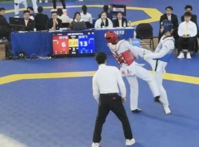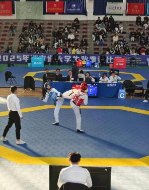 赛前,刘驰聘教练匠心深耕,无私奉献,他带领运动员们常年实行“一周五训、每次三小时 ”的系统化训练模式,定期与兄弟院校进行比赛交流,以赛促练。寒来暑往,从未间断,为校跆拳道队运动员们夯实技术基础。从横踢、侧踹的发力细节校准,到格挡、反击的节奏把控,教练逐帧拆解动作要领,以成千上万次的重复训练打磨肌肉记忆; 针对每位队员的身体素质差异,定制个性化训练方案, 补短板、强优势,让基础动作既规范标准又兼具个人风格 。日复一日的坚持,让运动员们在赛场上能精准运用技术、从容应对变局,这份扎实的功底,成为他们此次突破重围 、勇夺金牌的坚实底气。