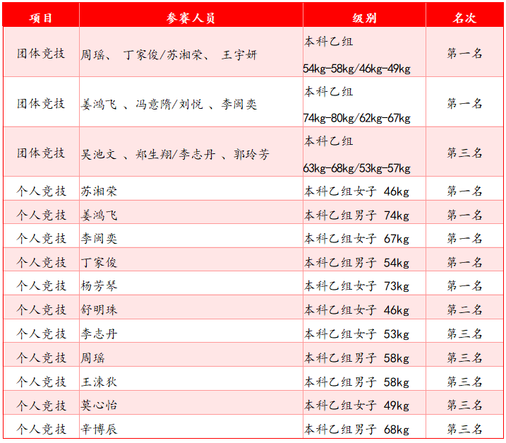 银牌与铜牌的获得者们同样闪耀赛场 、值得尊敬。舒明珠同学在女子 46kg级对决中全力以赴,凭借稳定发挥斩获银牌;“大师兄”周瑶领衔老队员王涑狄、辛博辰 、李志丹 、莫心怡,以精湛技法与丰富经验勇夺个人竞技铜牌 。吴池文,郑生翔,李志丹,郭玲芳取得中级别团竞的铜牌。