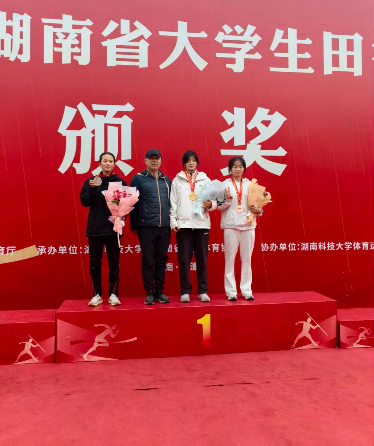 在赛场上,他们将湖南理工学子的拼搏精神展现得淋漓尽致。王智勇表现惊艳,一举包揽男子5000米和男子3000米障碍两项冠军,成为赛场上的“双金王”;林银萍在女子七项全能中奋勇争先,斩获银牌;蔡沛锦荣获女子跳远第四名;范纾赫、王炜、张卓、刘佳豪组成的男子4×100米接力队,以及李彤、蔡沛锦、张美、林银萍组成的女子4×400米接力队均获第七名。此外,多名选手在单项及接力项目中跻身八强,展现了扎实的竞技水平。